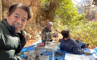 夏は暑かったし、10月は互いに忙し過ぎて休止していたが、この日から再開である。午前中2時間弱探した後は、アウトドアランチを食して終わりになる。